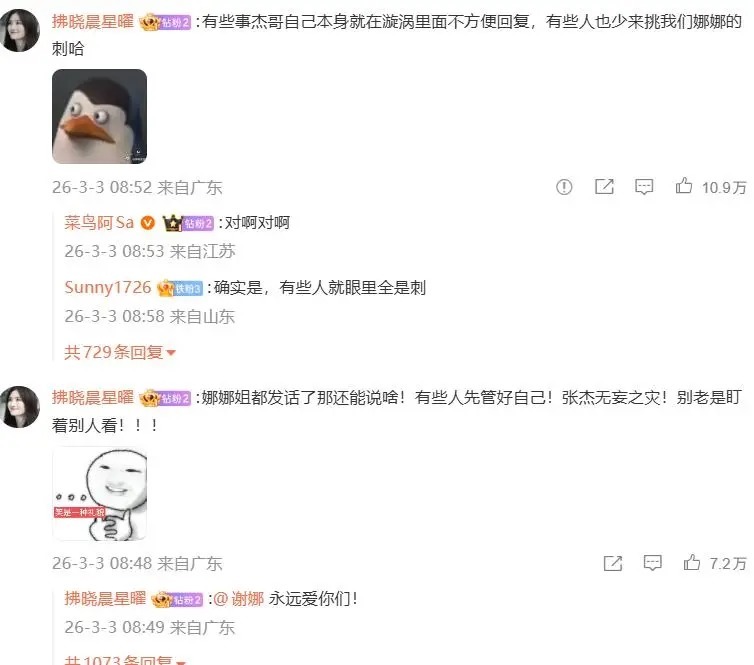 拜张杰强大的路人缘所赐,她这发文在她自己的社媒倒是控评得很成功,看不到多少负面评论。